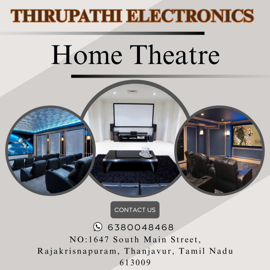 Upgrade your home entertainment today with our premium home theatre solutions. Visit our store or contact us at 63800 48468 to learn more. Discover why Thirupathi Electronics is the go-to destination for home entertainment in Thanjavur.