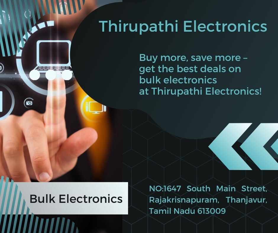 Looking for high-quality electronics at unbeatable prices? At Thirupathi Electronics, we specialize in bulk electronics at wholesale rates. Whether you’re a business owner, reseller, or just looking for great deals, we’ve got you covered!